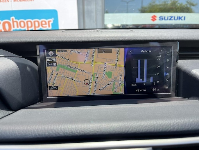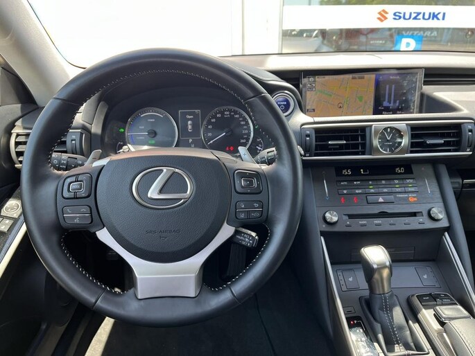 Het moderne design van de Lexus IS 300h wordt verder versterkt door de lichtmetalen velgen van 17 inch en de metallic lak, waardoor deze auto zeker de aandacht zal trekken. Daarnaast kunt u genieten van naadloze connectiviteit dankzij het Apple Carplay/Android Auto systeem, waarmee u moeiteloos uw telefoon kunt koppelen en genieten van uw favoriete muziek en apps.
