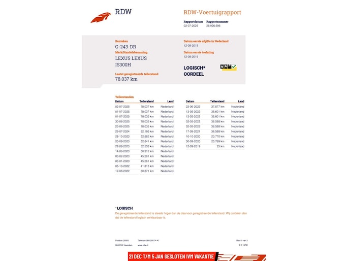 Kilometerstand gecontroleerd