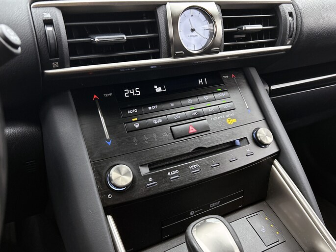 De vormgeving van deze Lexus IS is stijlvol maar ingetogen en dat maakt meteen duidelijk dat jij van deze auto pure kwaliteit mag verwachten. Deze hybride heeft dankzij de extra elektromotor een zeer laag brandstofverbruik. Hoge kwaliteit is ook binnenin aanwezig. Kijk maar naar de leren bekleding! Deze Lexus IS heeft verwarmbare voorstoelen, voor zowel bestuurder als bijrijder. Ook 17 inch lichtmetalen velgen, LED koplampen, warmtewerend glas, in delen neerklapbare achterbank, LED-achterlichten en snelheidsafhankelijke stuurbekrachtiging zijn aan boord.
