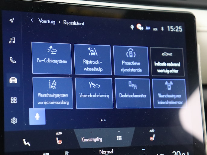 Deze Lexus biedt je niet alleen comfort en rijplezier, maar ook veiligheid. Actieve veiligheidssystemen houden voor jou de weg in de gaten en reageren op onvoorziene situaties voordat jij dat kunt. Snelheid, brandstof, navigatie... de head-up display laat het allemaal zien, recht in het zichtveld van de weg. Belangrijk voor jouw veiligheid en die van jouw passagiers is de verkeersbord-detectie in deze auto. Indien je onbedoeld de rijstrook lijkt te verlaten, reageert het Lane-keeping systeem meteen en corrigeert. Bovenop deze veiligheidsfeatures heeft deze Lexus bovendien dodehoekdetectie, forward collision warning system, vermoeidheidsherkenning en autonoom remsysteem.