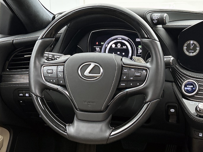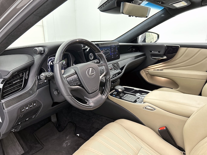 De Lexus LS is een goed voorbeeld van Japanse bouwkwaliteit. De krachtige V6 hybride aandrijflijn staat garant voor uitstekende prestaties. Stel je voor: zoevend over de snelweg terwijl het gulle daglicht het lederen interieur binnenvalt door het elektrisch bediende glazen panorama dak. En wat gemak betreft: daar zorgt onder andere de elektrisch bedienbare achterklep voor. In de verwarmbare voorstoelen zitten is elke keer een welkom gevoel. De massagefunctie doet daar nog een schepje bovenop. Zit je goed? De voorstoelen zijn 28-voudig elektrisch instelbaar, met geheugenfunctie. De luchtvering met Auto-Levelling functiebiedt stabiliteit onder alle wegcondities. Ook op de achterbank kunnen passagiers zichzelf snel opwarmen dankzij de achterbankverwarming. Ook elektrische zonnescherm voor de achterruit, 20 inch lichtmetalen velgen, Full LED adaptieve koplampen met Blade-Scan technologie, adaptief dempingsysteem, warmtewerend glas en LED-achterlichten horen tot de voorzieningen op deze auto.