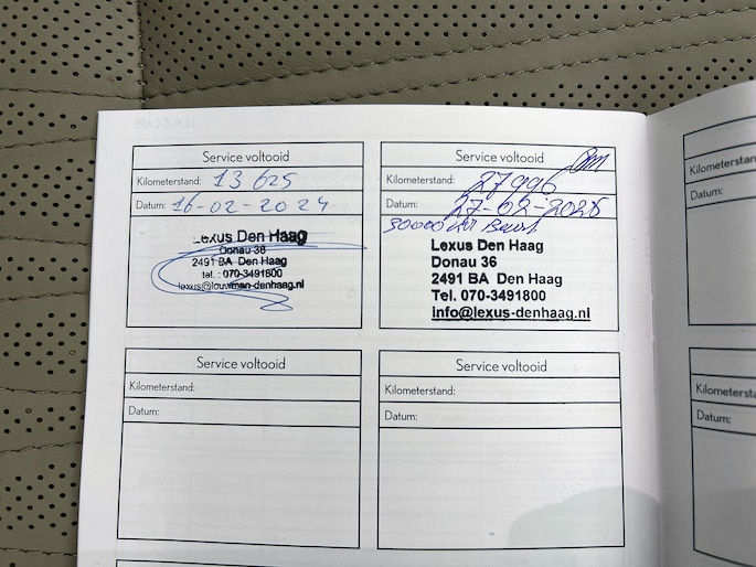 Optioneel afleverpakket (zonder meerprijs): Lexus Select: • 24 maanden "Lexus Select" (Tot 10 jaar verlengbaar*) • 24/7 Pechhulp Europa dekking • Garantiedekking heel NL • 14 dagen tot max. 1000 KM omruilgarantie • Tenaamstelling/vrijwaring • Hybrid Health Check (Indien van toepassing) • Gecontroleerde KM-stand • Vloeistoffencheck & bijvullen Poetsbeurt • Onderhoud conform schema • Nieuwe APK • Gratis vervangend vervoer** *Informeer naar de geldende voorwaarden **Bij reparaties die langer dan 24 uur duren. Gratis vervangend vervoer kent een een maximale duur van 72 uur.