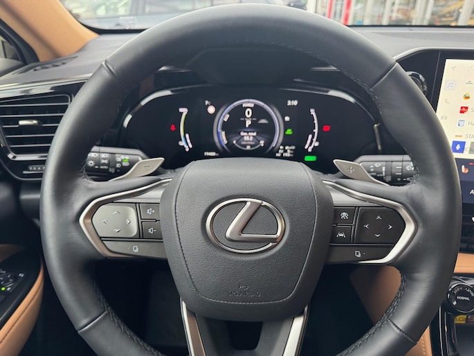 Geen andere techniek heeft in deze eeuw de automobiel zo veranderd als de hybridetechniek. Deze Lexus Nx heeft een hybride motor, dus een combi van brandstof en elektrisch. Een slim en milieuvriendelijk systeem dat ook nog eens lekker kostenbesparend is. Solide op nat asfalt en regenklinkers, maar net zo onverschrokken op de onverharde weg: de vierwielaandrijving trekt je overal doorheen. Tijdens de koude maanden is stoelverwarming een voorziening die u niet wilt missen. Bij de uitrusting van deze Lexus horen onder meer 18 inch lichtmetalen velgen en in delen neerklapbare achterbank.