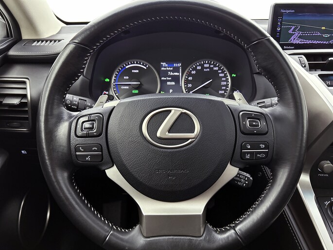 Zoals je mag verwachten van deze Lexus NX is hij uitgerust met een reeks aan actieve veiligheidssystemen. Het Lane-keeping systeem let constant op en waarschuwt of corrigeert als je onoplettend over de lijnen van de rijstrook gaat. De Brake Assist geeft een maximale boost aan het remsysteem in een noodsituatie. Zo verkort je de remweg en verklein je de kans op ongelukken. Met voorzieningen als head-up display, dodehoekdetectie en hill hold functie, ben je altijd veilig onderweg.