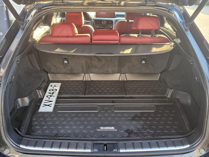 Schitterende Lexus RX 450h AWD F Sport Line. Auto wordt aangedreven door een geweldige 3500 cc 6-cilinder en met de hybride motor van deze Lexus RX heeft u de keuze: elektrisch als het kan, benzine als het moet. Wat valt er verder op aan dit model? Dat is toch zeker het lederen interieur. En niet te vergeten de elektrisch bedienbare achterklep. Bij de rijke uitrusting horen ook 20 inch lichtmetalen velgen, LED koplampen, adaptief dempingsysteem, aluminium dakrailing, elektrisch inklapbare buitenspiegels en extra getint glas.