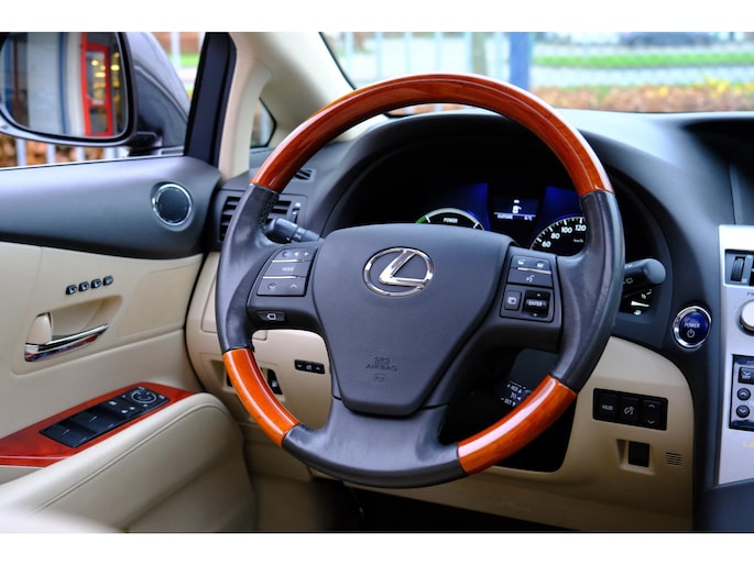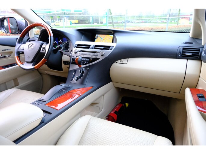 Doordachte techniek en intelligente systemen zijn pas waardevol wanneer ze een functie hebben. Meer dan wie ook hebben de Japanse autofabrikanten dit door, en dat merkt u ook aan deze Lexus RX. Een krachtige motor geeft deze auto zijn sportieve prestaties. Met behulp van de vierwielaandrijving kan deze auto met elk soort weer en wegdek overweg. Dat noemen ze nou een ruimtelijk effect: het elektrisch bediende glazen panorama dak, dat net zo gemakkelijk open en dicht gaat als de elektrisch bedienbare achterklep. En ondertussen het ware luxegevoel van het lederen interieur. Lekker hoor, die verwarmbare voorstoelen. Helemaal op koude dagen. In deze Lexus profiteert u onder andere ook van: LED-koplampen, warmtewerend glas en snelheidsafhankelijke stuurbekrachtiging.