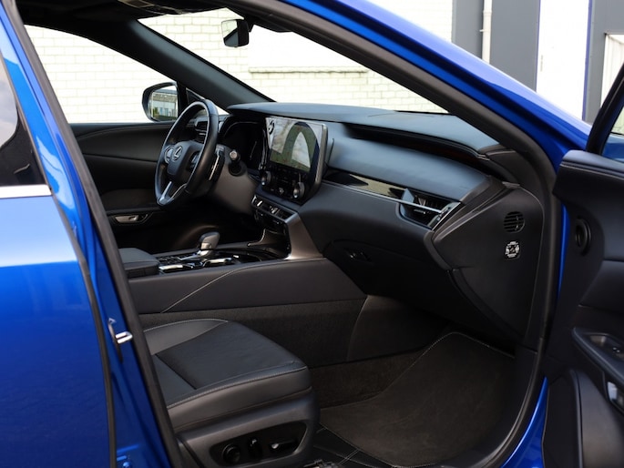 Prachtige, luxe en sportieve, premium SUV. Deze schitterende Lexus RX is volledig dealer onderhouden en afkomstig van de eerste eigenaar. Geweldige uitstraling in Sapphire Blue metallic met originele 21" spaak velgen en schitterend hoogwaardig zwart lederen interieur. De plug-in hybride aandrijflijn heeft een volledig elektrisch bereik van zo'n 70 km. Daarna gedraagt hij zich als een "reguliere" hybride. Zodat u ook zuinig rijdt wanneer u eens niet in staat bent de auto op te laden. Deze schitterende bolide heeft een keur van comfort verhogende opties aan boord en is er op gericht de bereider te verwennen. Rijden wordt reizen met deze waanzinnige Lexus RX F-Sport Design. Op deze auto heeft u nog fabrieksgarantie tot september 2027, bovendien kunt u gebruik maken van tot 10 jaar Lexus Relax garantie. Bent u geïnteresseerd in deze auto, neem dan gerust contact met ons op voor een bezichtiging en/of overtuigende proefrit.