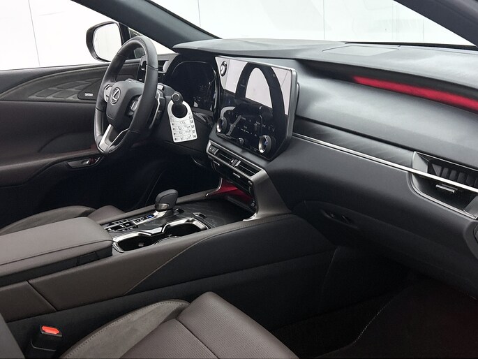 Alle technologie in de Lexus RX is er op gericht om jouw rit veilig en gemakkelijk te laten verlopen. Op de teller van deze dealeronderhouden auto staat slechts 10 kilometer. De auto is van bouwjaar 2025. De krachtige benzinemotor staat garant voor uitstekende prestaties. Het interieur van deze auto is bekleed met leer voor een ongeëvenaard luxueuze uitstraling. Zit je goed? De stoelen zijn eenvoudig instelbaar dankzij de elektrische bediening met geheugen. Licht en lucht komen onbelemmerd binnen als het elektrisch bediende glazen panoramadak met één druk op de knop wordt geopend. De elektrisch bedienbare achterklep opent met een druk op de knop. In de winter wil iedereen mee. Zou dat komen door de verwarmde achterbank? Verder is de Lexus uitgerust met: 21 inch lichtmetalen velgen, LED-koplampen, adaptief dempingsysteem, warmtewerend glas, trailer assistent en dakspoiler.