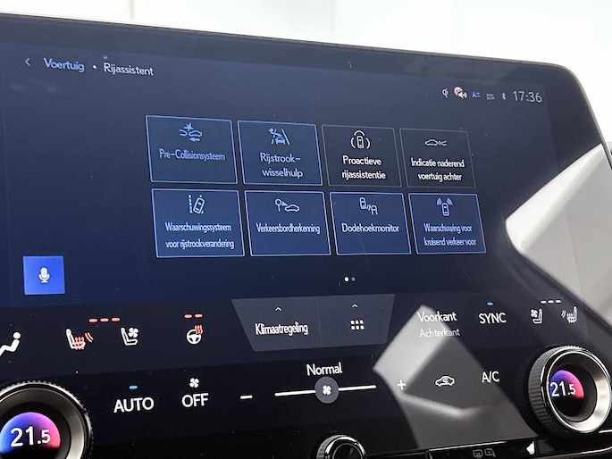 In deze auto zijn verschillende technologieën aanwezig die voor jou het verkeer en de omgeving in de gaten houden en die desnoods ook kunnen remmen of bijsturen. Je hoeft onderweg je hoofd nooit te draaien of je blik te verplaatsen om dashboard-info af te lezen. De head-up display projecteert alles op de voorruit. Je kunt rijden als een jachtpiloot. Dat de auto steeds meer taken van de bestuurder overneemt, merk je bijvoorbeeld aan het systeem voor verkeersbord-detectie in deze Lexus. Met het Lane-keeping systeem ga je nooit onbedoeld over de streep. Dankzij veiligheidsvoorzieningen als dodehoekdetectie, forward collision warning system, vermoeidheidsherkenning, autonoom remsysteem en bandenspanningcontrolesysteem, ben je steeds veilig onderweg.