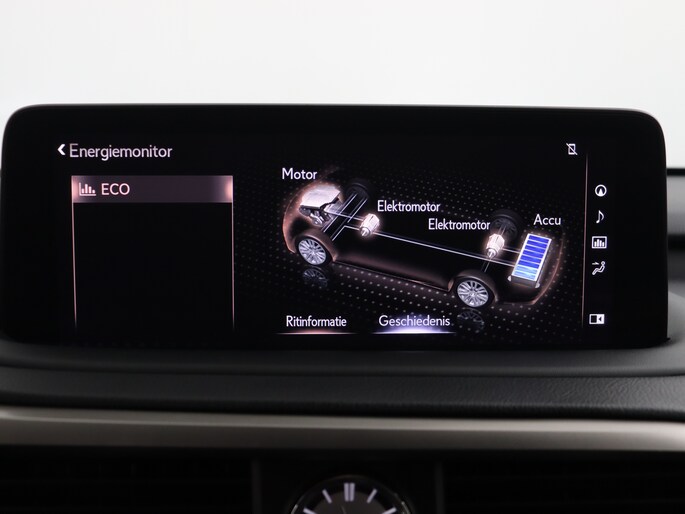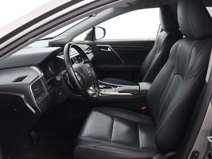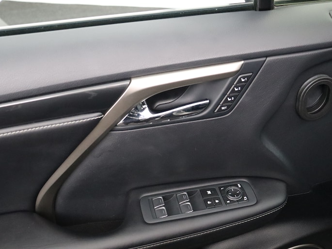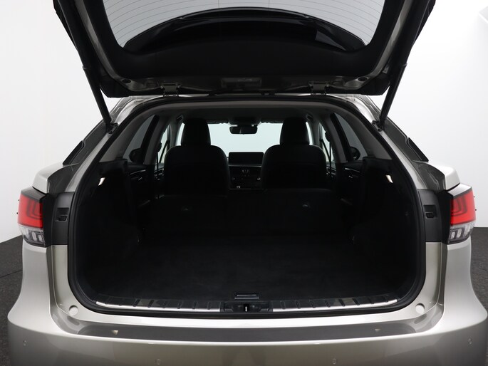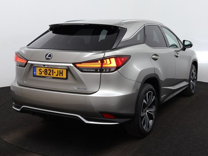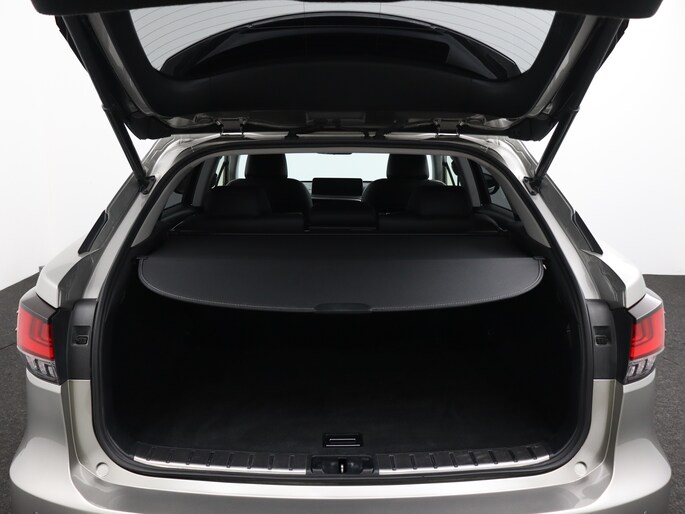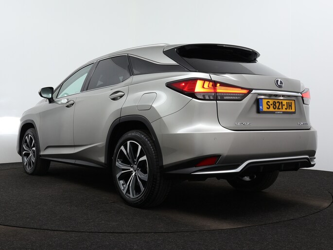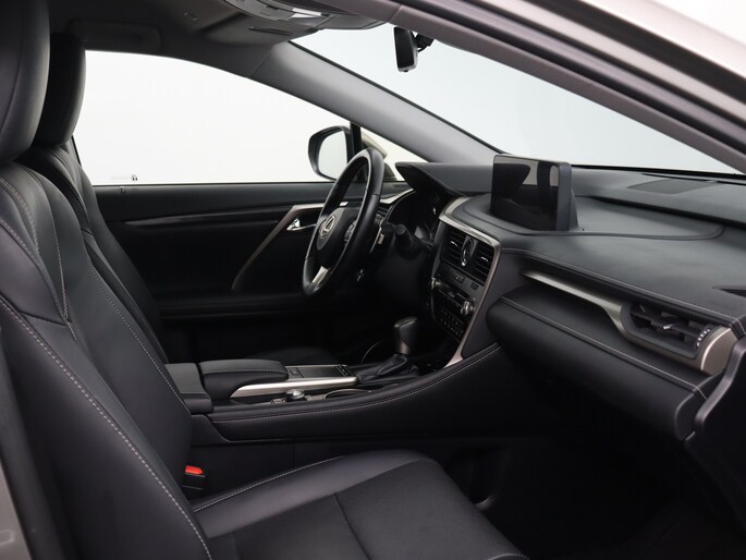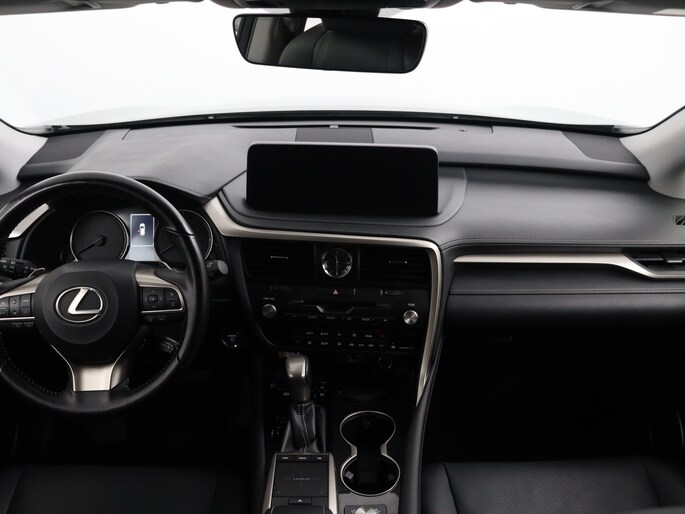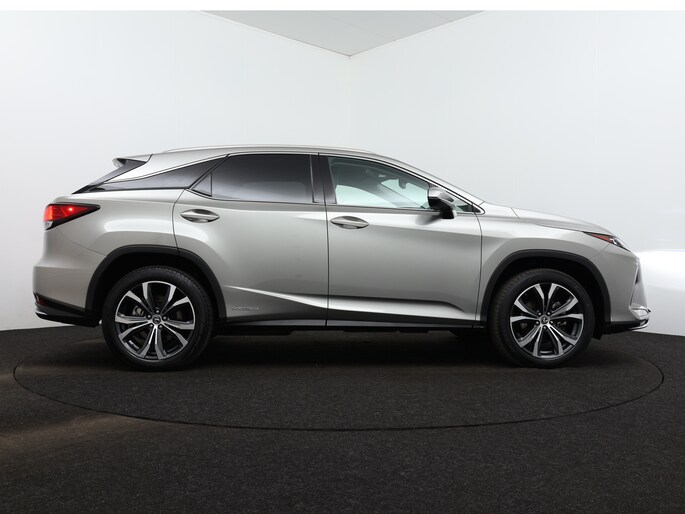 Modern design en bijzondere techniek bepalen de kwaliteiten van de hybride Lexus RX. Elektrisch rijden of benzine? Deze hybride Lexus RX combineert de pluspunten van allebei naar keuze. Dit mag je gerust een luxe uitvoering noemen: een lederen interieur én een elektrisch bedienbare achterklep! Zit u goed? De stoelen zijn eenvoudig instelbaar dankzij de elektrische bediening met geheugen. Ook achterin heerst een luxe sfeer, vanwege de verwarmde achterbank. Tot de voorzieningen van deze auto behoren 20 inch lichtmetalen velgen, aluminium dakrails, aluminium dakrailing, donker getint glas achter, elektrische handrem, LED-achterlichten, elektrisch verstelbare lendensteun, metallic lak, elektrisch inklapbare buitenspiegels, LED-dagrijverlichting en in delen neerklapbare achterbank.
