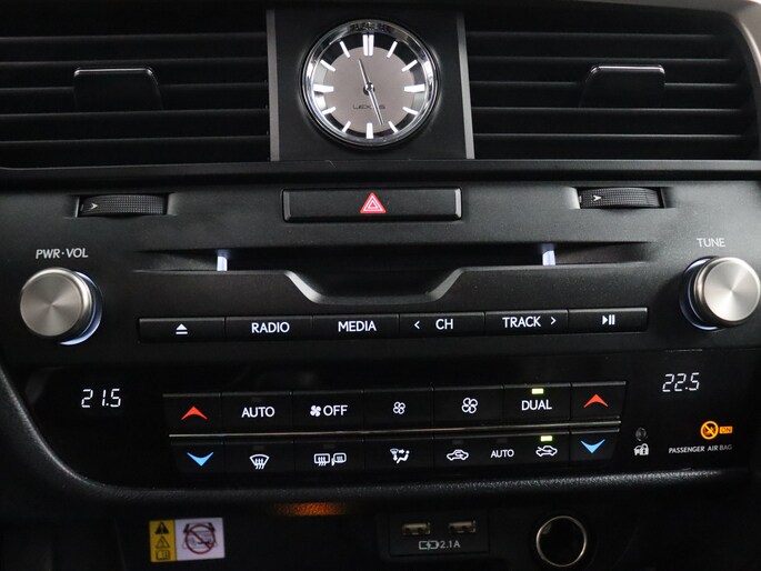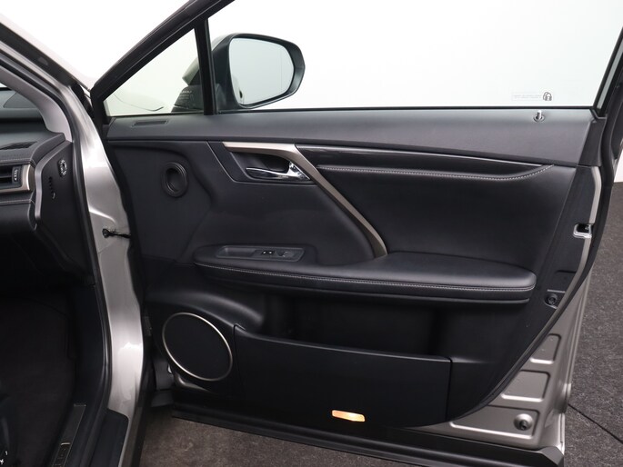 Voor storingvrije digitale radio-ontvangst zorgt de DAB-ontvanger. Een veiligheidsverhogende optie is de ingebouwde spraakbediening. Terwijl u uw ogen op de weg houdt, bedient u de auto met uw stem. Nooit meer de weg zoeken en ontspannen arriveren bij uw reisdoel. Met het in dashboard opgenomen navigatiesysteem zit u veilig en ontspannen in de auto. Onderweg de accu van uw smartphone opladen gaat zonder snoeren en stekkers. U plaatst ‘m simpel in de draadloze oplaadmogelijkheid voor telefoons en klaar! Uw eigen muziek afspelen via de autoradio gaat heel gemakkelijk met de usb-aansluiting. Het spreekt voor zich dat een auto als deze ook van climate control met ionisatie is voorzien. De parkeerhulp met achteruitrijcamera geeft u duidelijk zicht op de ruimte achter de auto. De automatisch inschakelbare verlichting en regensensor zorgen dat onderweg automatisch de verlichting en de ruitenwissers worden ingeschakeld. Daarmee nemen ze u veel werk uit handen. Ook over uw schouder ziet u onderweg niet alles wat er aan de achterzijde gebeurt. Daarom heeft deze Lexus RX een achteropkomend verkeer waarschuwing. Een druk op de knop en starten maar! Dat kan dankzij keyless start. De Lexus is standaard voorzien van: lederen versnellingspook, sportstuur met schakelpaddels, dvd-systeem en automatisch dimmende buitenspiegels.