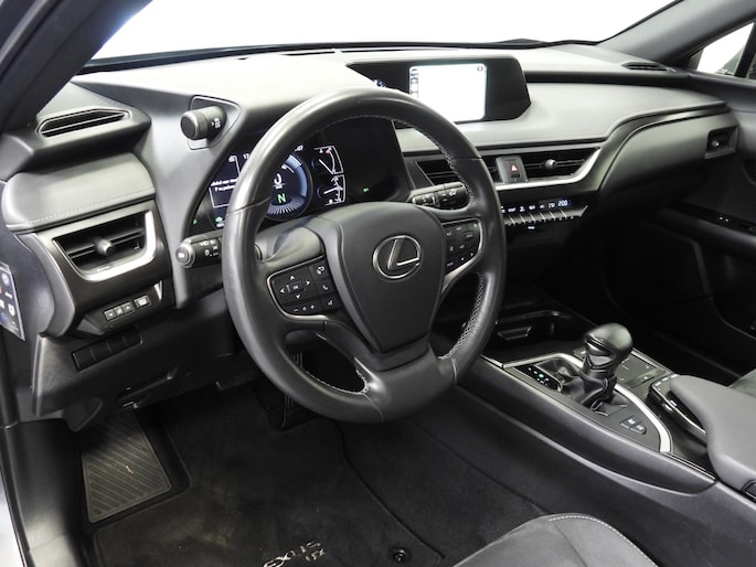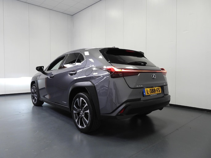 Het unieke van Japanse auto's als deze Lexus UX is dat ze zo goed doordacht zijn. Ieder onderdeel is doorontwikkeld, maar tegelijk is deze auto meer dan de optelsom van al zijn onderdelen. Deze auto biedt stijl, klasse maar bovenal kwaliteit. Rijden op brandstof én elektriciteit? Dat kan, met de hybride motor van deze Lexus UX. De elektromotor ondersteunt of neemt het deels over van de brandstofmotor als dat uitkomt. Scheelt lekker in de kosten! Bij de zeer complete uitrusting van deze auto behoren ook 18 inch lichtmetalen velgen, LED koplampen, warmtewerend glas, zwarte hemelbekleding, in delen neerklapbare achterbank en LED-achterlichten.