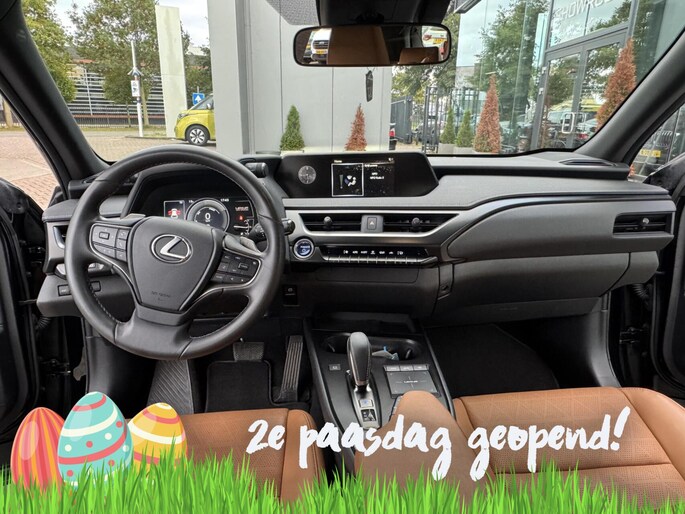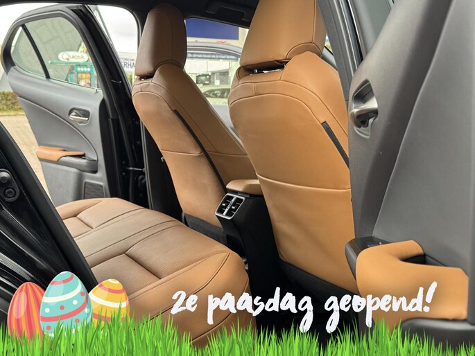 Valt u voor de styling van deze Lexus UX? Of gaat u voor de slimme techniek? Wat u ook kiest, u krijgt altijd een auto met een volledig elektrische aandrijflijn. Nooit meer naar de pomp! De elektromotor opladen en rijden maar! Lederen bekleding is een smaakvolle en comfortverhogende optie. Ook is de auto voorzien van: elektrisch verstelbare bestuurdersstoel, 17 inch lichtmetalen velgen, LED koplampen, warmtewerend glas, in delen neerklapbare achterbank en LED-achterlichten.