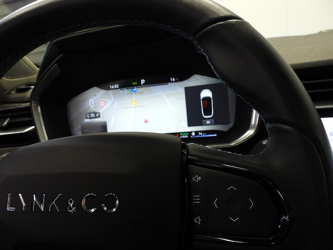 Snelheid, brandstofinfo, noem maar op. Het digitale dashboard houdt u permanent op de hoogte. Goed en overzichtelijk. Omdat u nou eenmaal geen ogen in uw achterhoofd heeft, is het altijd lastig om achteruit te rijden zonder brokken te maken. De achteruitrijcamera lost dat probleem op. Adaptive cruise control is een comfortabele en veilige optie. Het systeem reguleert de snelheid en houdt automatisch afstand tot uw voorligger. Loopt het verkeer onderweg vast, schakel dan de file assistent in en laat het systeem zorgen voor de juiste afstand bij stilstaan en rijden. Ook de akoestiek in de auto wordt optimaal benut door het high performance audiosysteem. Met dashboard met spraakbediening, full map navigatiesysteem, achteropkomend verkeer waarschuwing, climate control, audiobediening op het stuur en draadloos opladen is deze Lynk & Co helemaal compleet.