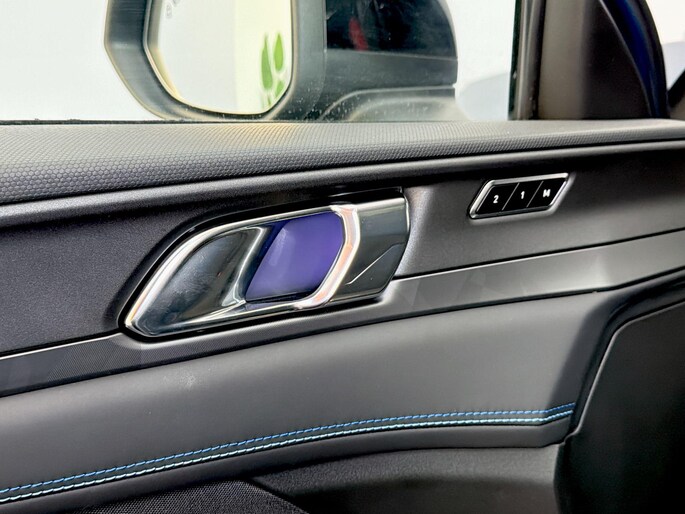 Deze auto maakt direct indruk. De originele blauwe lak in combinatie met het Black Pack zorgt voor een krachtige, sportieve uitstraling. Alle blauwe accenten zijn strak zwart uitgevoerd en de velgen zijn zwart gepoedercoat, wat de auto een luxe en volwassen look geeft. Dit is zo’n uitvoering die er niet alleen goed uitziet op foto’s, maar in het echt nog beter overkomt.