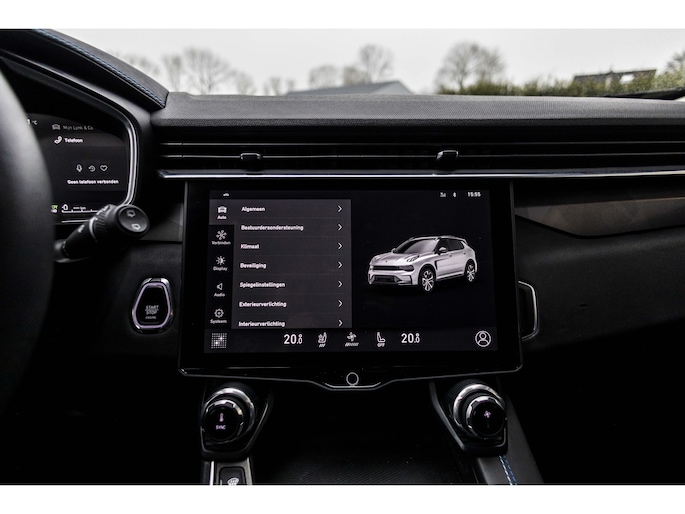 Het digitale dashboard is een perfecte bijrijder. Alles benodigde informatie is permanent zichtbaar of opvraagbaar. Als u de adaptive cruise control inschakelt, regelt de auto zelf de snelheid en de afstand tot de auto voor u. Kop aan kont langzaam rijden: dan is afstand houden soms lastig. De file assistent helpt en zorgt automatisch voor veilige ruimte tot de voorligger. Ook als die tot stilstand komt. Voor een veilige rit is het belangrijk dat uw handen het stuur vasthouden en uw ogen gefocust blijven op de weg; daarom kunt u het audio-installatiesysteem, met DAB-ontvangst en full map navigatiesysteem bedienen met het stuurwiel of via spraakbediening. Kabelkluwens en stekkerslingers van smartphones zijn hier niet aan de orde. De draadloze oplaadmogelijkheid voor telefoons maakt opladen strak, simpel en snel. De Lynk & Co is standaard voorzien van: WIFI-hotspot, achteropkomend verkeer waarschuwing, automatische airconditioning, parkeersensoren achter, regensensor en keyless entry.