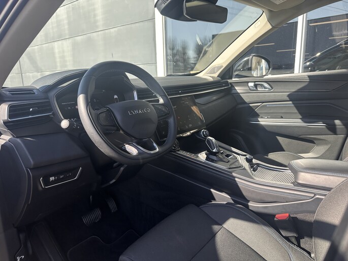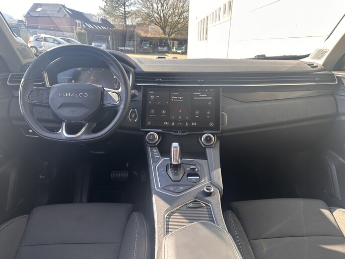 Overzicht, informatie en functionaliteit: dat biedt het digitale dashboard. Adaptive cruise control is veilig en comfortabel. De snelheidsregelaar houdt automatisch afstand tot het voertuig dat voor u rijdt. De aanwezige file assistent meet de afstand tot uw voorligger en zorgt voor een veilige afstand. Staat het voor u opeens stil? Dan zorgt het systeem dat de auto ook stopt. Voor een veilige rit is het belangrijk dat uw handen het stuur vasthouden en uw ogen gefocust blijven op de weg; daarom kunt u het audio-installatiesysteem, met DAB-ontvangst en full map navigatiesysteem bedienen met het stuurwiel of via spraakbediening. Onderweg de smartphone opladen gaat helemaal zonder snoeren, door de draadloze telefoonlader. Met WIFI-hotspot, achteropkomend verkeer waarschuwing, automatische airconditioning, parkeersensoren achter, regensensor en keyless entry is deze Lynk & Co helemaal compleet.