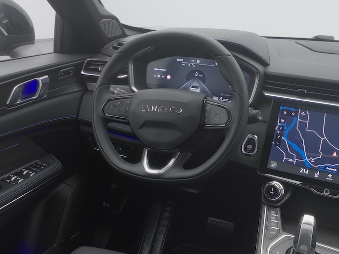 Met zijn dynamische eigenschappen belooft deze Lynk & Co 01 u een heleboel rijplezier. Hij is ontwikkeld op een geavanceerd onderstel en biedt altijd een veilig weggedrag. Een solide hybride: zowel een elektromotor als een verbrandingsmotor voor maximaal rijplezier en minimale milieubelasting. Op koude en donkere dagen zijn de verwarmbare voorstoelen een uitkomst. De elektrisch bedienbare achterklep opent met een druk op de knop. Het interieur baadt in een zee van licht door het glazen panoramadak. Tot de uitrusting van deze Lynk & Co behoren ook 20 inch lichtmetalen velgen, LED koplampen, zwarte hemelbekleding, dakspoiler, in delen neerklapbare achterbank en LED-achterlichten.