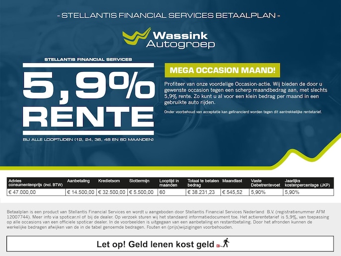 Vraag onze verkoopadviseurs naar de voorwaarden of kijk op onze website www.wassinkautogroep.nl voor meer informatie.