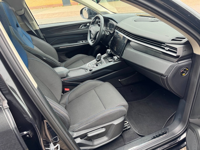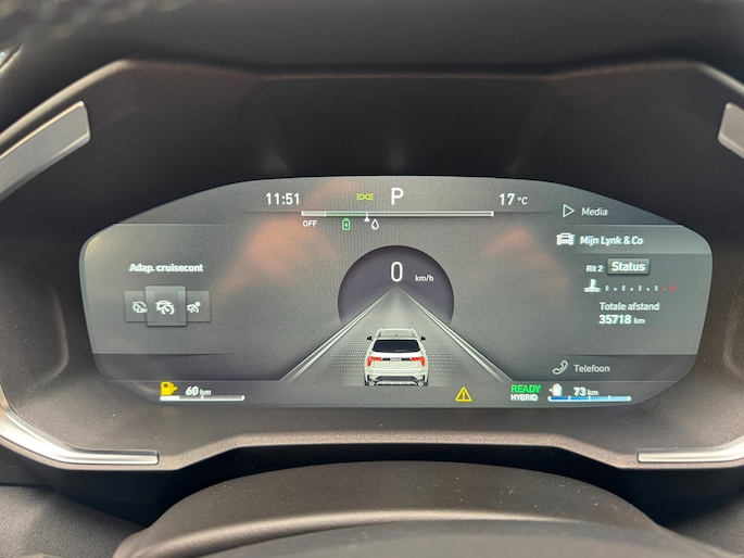 Het digitale dashboard stelt u in staat uw cockpitinterface te personaliseren. De 360 graden camera wordt mogelijk gemaakt door vier camera's die tezamen werken om zo een uitgebreid zicht te bieden, wat van grote waarde is bij het navigeren door smalle straatjes en parkeerplekken. Als u de adaptive cruise control inschakelt, regelt de auto zelf de snelheid en de afstand tot de auto voor u. Laat u onderweg niet afleiden, de bediening van het audio-installatiesysteem en ook het navigatiesysteem gaat met knoppen op het stuur en met spraak. Natuurlijk is de audio-installatie voorzien van DAB-ontvangst. Moet uw smartphone ook even tanken? Bijladen kan supersimpel met de draadloze telefoonlader. De Lynk & Co is standaard voorzien van: achteropkomend verkeer waarschuwing, automatische airconditioning, regensensor, keyless entry, automatisch dimmende binnenspiegel en lederen stuur.