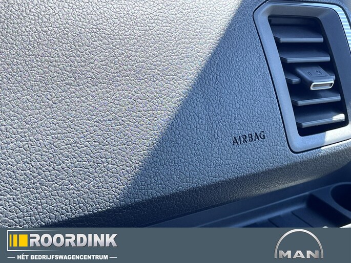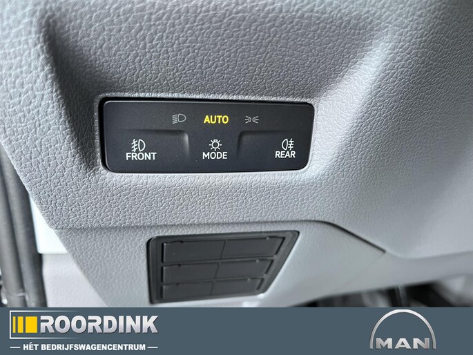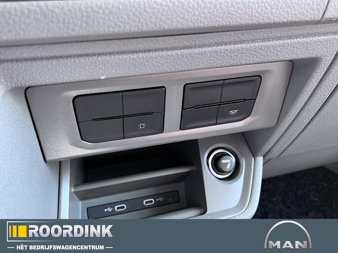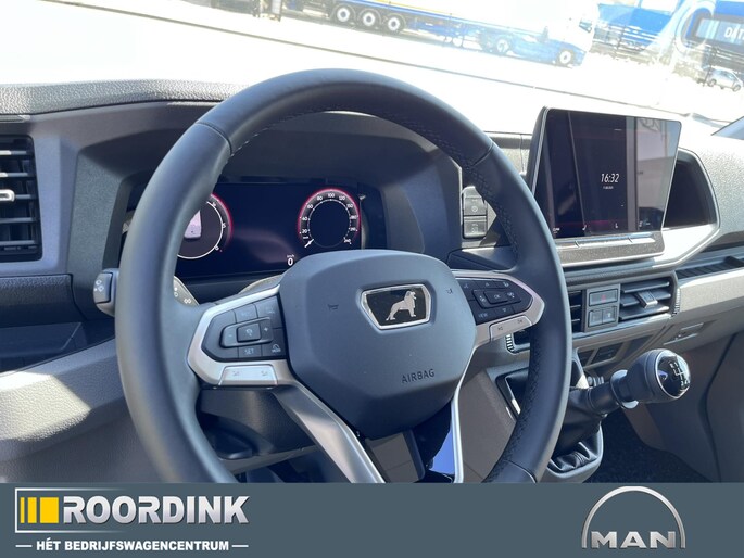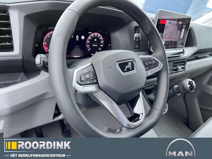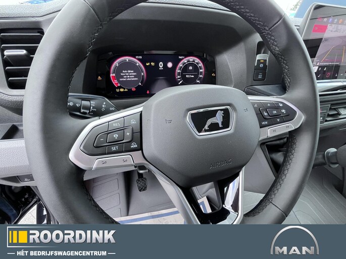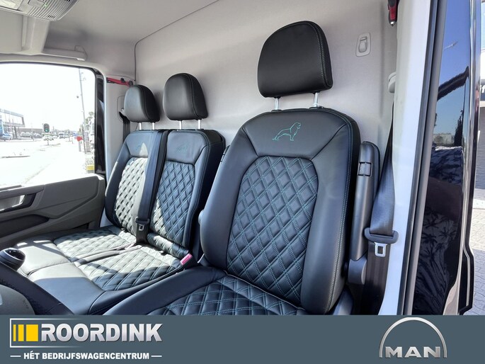 Luxe lederen bekleding met dubbelgestikt wieberpatroon en MAN-logo