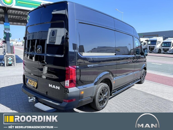 Deze unieke MAN TGE 3.160 met achterwielaandrijving en een indrukwekkend trekgewicht van 3500 kg is een absolute blikvanger in zijn Deep Pareleffect lak.