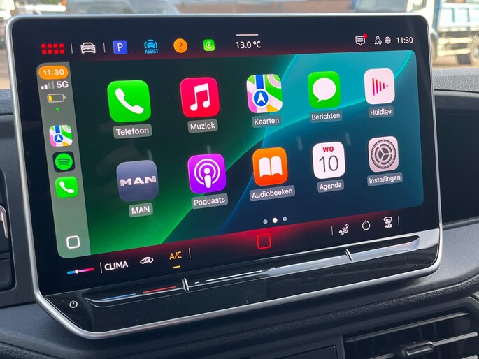 Omdat u nou eenmaal geen ogen in uw achterhoofd heeft, is het altijd lastig om achteruit te rijden zonder brokken te maken. De achteruitrijcamera lost dat probleem op. In deze auto beschikt u natuurlijk over een navigatiesysteem. Het audiosysteem met DAB-radio biedt glasheldere geluidskwaliteit. U bedient dit veilig via het stuurwiel. Een extra veiligheidsoptie is aanwezig in de vorm van de kruisend verkeer detectie. Die registreert meteen als een tegenligger een aanrijdingsrisico vormt. Het drukke verkeer eist onderweg al uw aandacht op. Daarom is het goed dat deze MAN is voorzien van diverse systemen die u assisteren tijdens de rit. Een automatisch inschakelbare verlichting neemt het waar als het donker wordt of gaat schemeren, en schakelt dan automatisch de verlichting in. Op dezelfde manier "ziet" de regensensor de eerste spatjes regen en schakelt dan de ruitenwissers in, en als het harder gaat regenen zet hij de ruitenwissers ook in een snellere stand. Autosleutels overbodig. Deze MAN TGE is voorzien van keyless start. Deze auto is voorzien van airconditioning, centrale deurvergrendeling met afstandsbediening, boordcomputer en verstelbaar stuur.