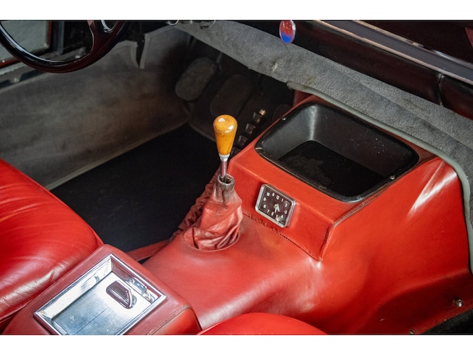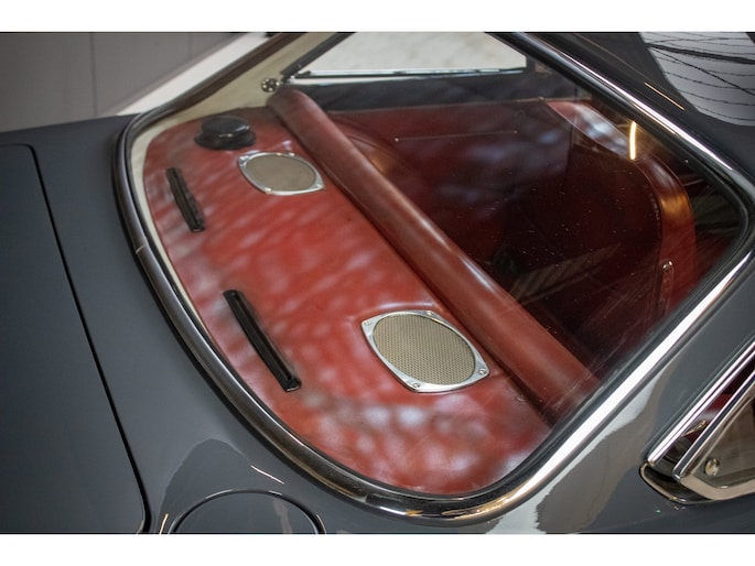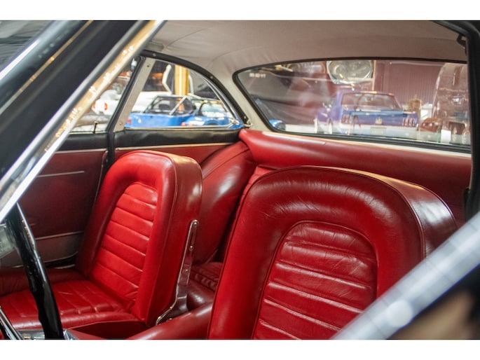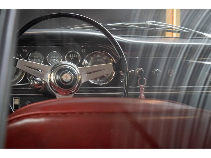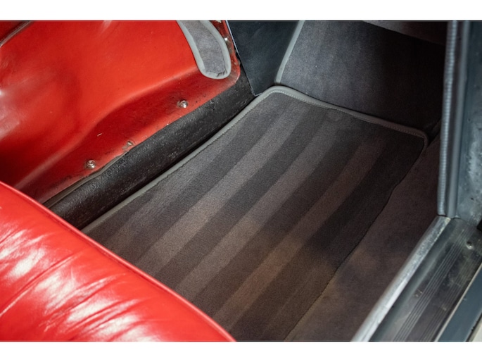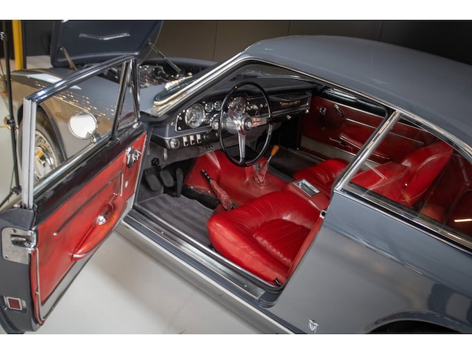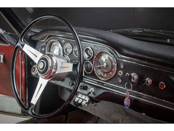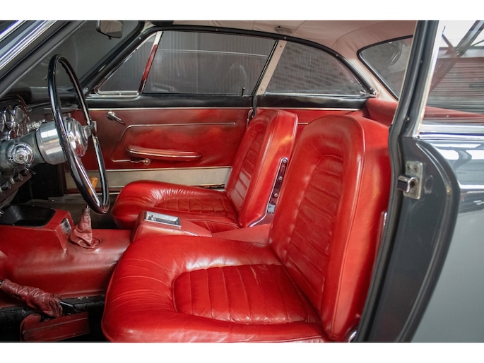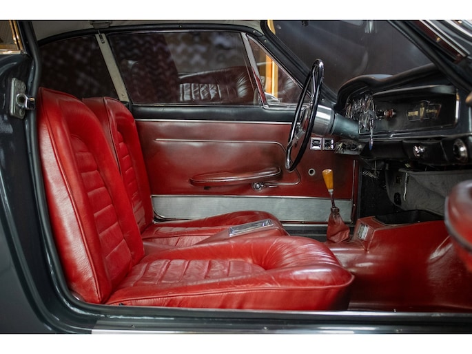 The car is finished in its original factory colour combination of Grigio Grafite (non-metallic) over red leather — a striking and extremely rare pairing that perfectly captures the understated elegance of 1960s Italian design. The interior remains largely original, displaying a beautiful and authentic patina that has been carefully preserved.