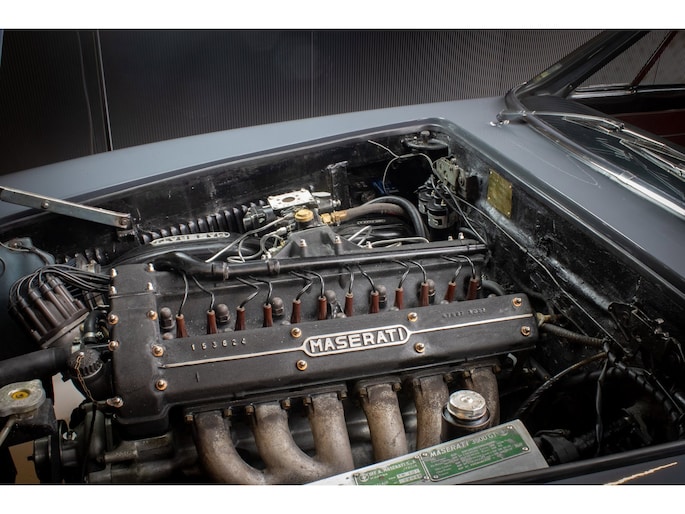 De historie van de auto is uitzonderlijk goed gedocumenteerd. De auto werd nieuw geleverd op 1 januari 1964 door Maserati Nice aan Societé Someco in Antibes (Frankrijk). Latere eigenaren zijn volledig bekend en gedocumenteerd, inclusief officiële correspondentie van de Prefectuur van Alpes-Maritimes die de herkomst en eigendomsgeschiedenis bevestigt.