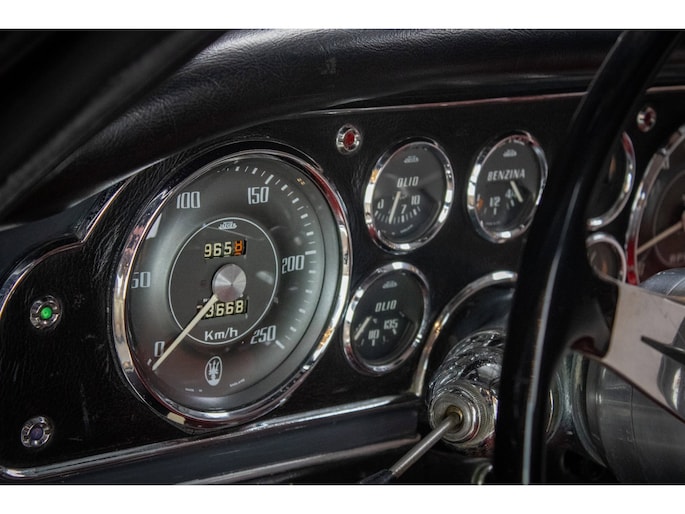 The provenance of the car is exceptional. Delivered new on January 1st, 1964 by Maserati Nice to Societé Someco in Antibes (France), the ownership history is fully documented and traceable. Subsequent owners include Jean Paloumet (Nice, 1975) and Alessandro Bruni (Italy, 2002). Official documentation, including correspondence from the Prefecture of Alpes-Maritimes confirming ownership history, is present.
