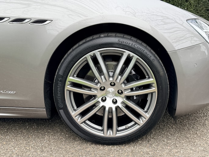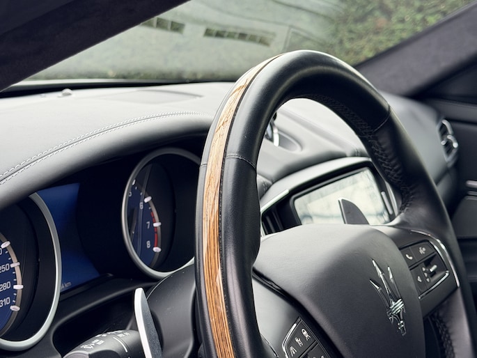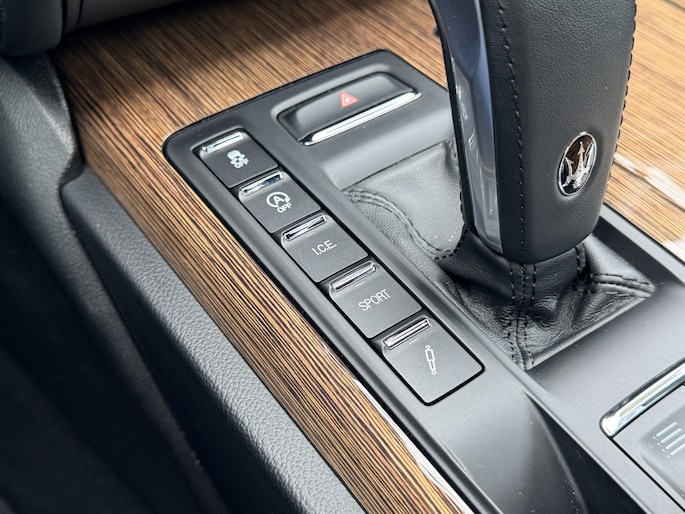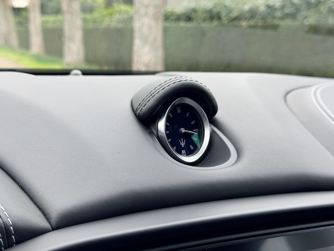 Exterieurdetails zoals de 20 inch Urano Diamond velgen in nieuwstaat en de zwarte remklauwen geven de auto precies de juiste balans tussen elegantie en sportiviteit. Het schuifdak zorgt voor extra licht en ruimtebeleving, terwijl het hoogglans notenhout in het interieur de klassieke Maserati-signatuur onderstreept.