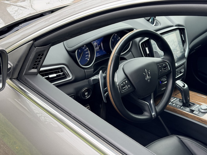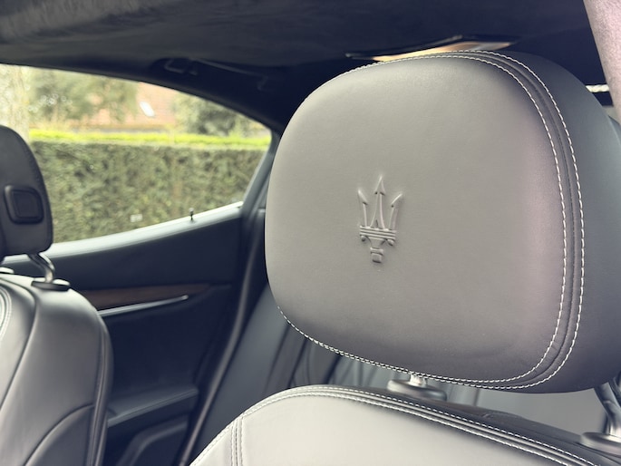Wat deze auto écht bijzonder maakt, is de uitvoering. Dit is geen “mooie Ghibli”, dit is er één in absolute topconfiguratie. De GranLusso-uitvoering tilt het geheel naar een hoger niveau met verfijnde materialen en afwerking, maar het is vooral de optielijst die deze auto onderscheidt van de rest.