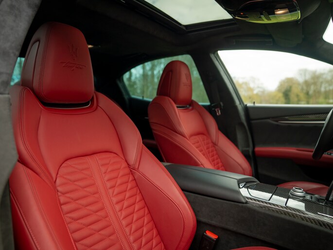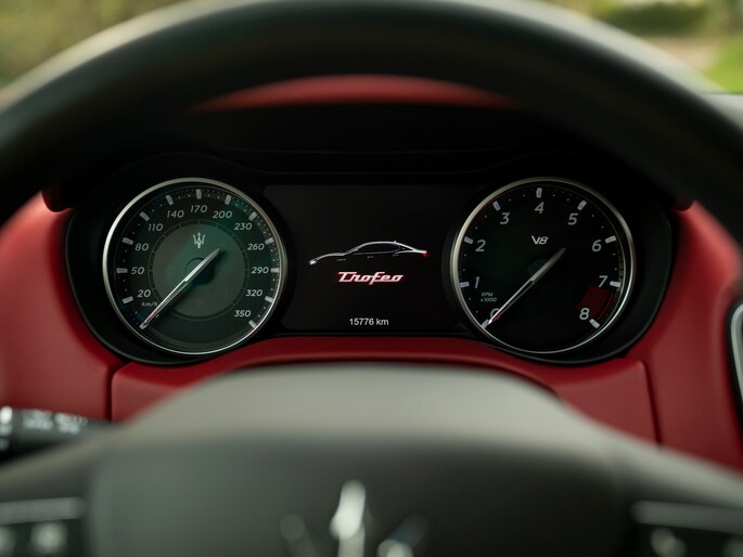 Dat de absolute topversie van de Maserati Ghibli stiekem de perfecte allrounder is, wordt nog eens duidelijk bij het aanschouwen van de rest van de uitrusting: Driver Assistance Pack Plus, Adaptive Cruise Control, stoelverwarming, stoelventilatie, Surround View Camera, Connectivity Pack en Traffic Sign Recognition maken van deze supersporter een heerlijk comfortabele én ontspannen reisgezel. Totdat het volume van het Premium audiosysteem omlaag wordt geschroefd en plaatsmaakt voor de klanken van een magische 8-cilinder…