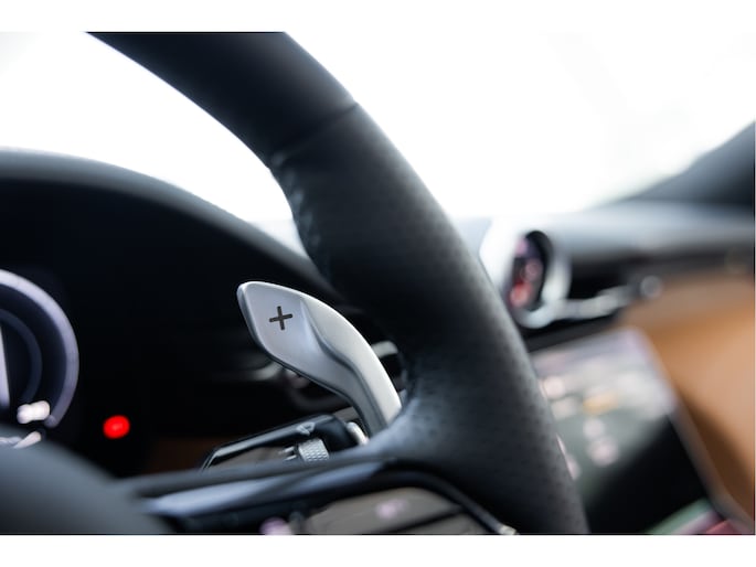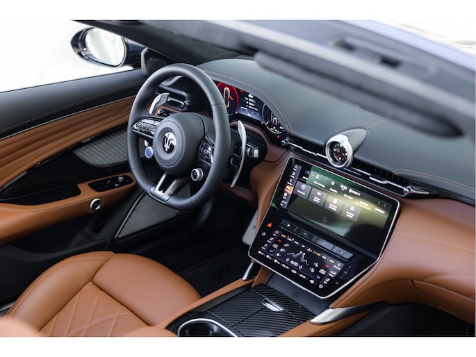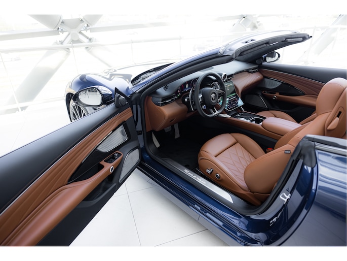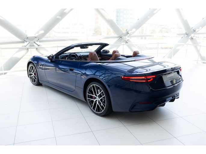 De Maserati GranCabrio Folgore in Blu Modena is meer dan een auto – het is een ervaring die al begint zodra je ernaar kijkt. Het diepblauwe exterieur weerspiegelt de elegantie van de Italiaanse kust, terwijl het warme Tan-lederen interieur uitnodigt tot een reis in pure luxe. Alles aan deze GranCabrio ademt raffinement: van de ambachtelijke stiksels in de bekleding tot de manier waarop het cabriodak zich opent en de horizon je tegemoetkomt.