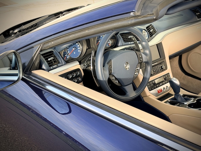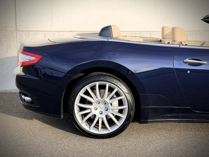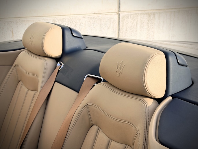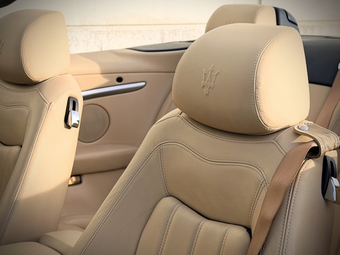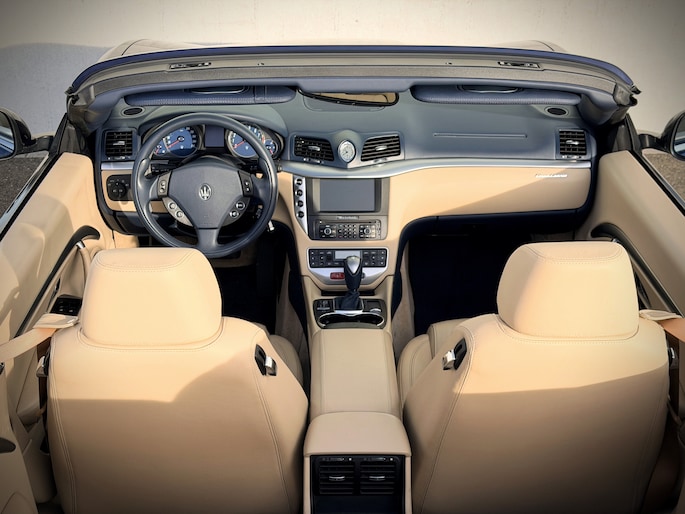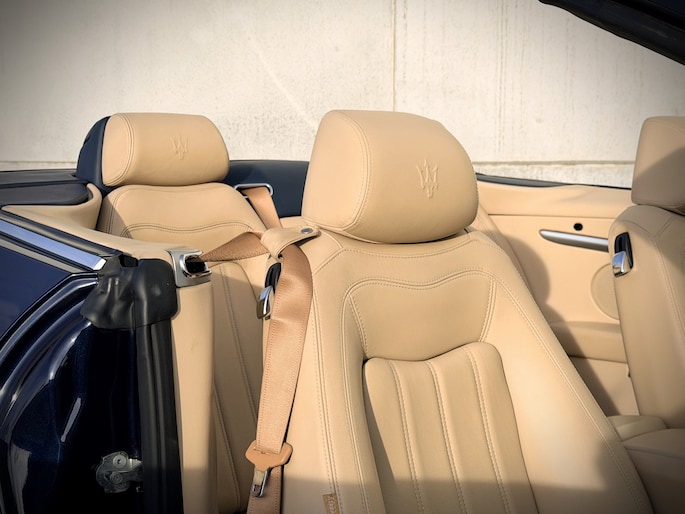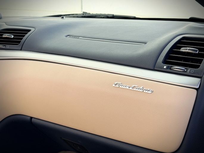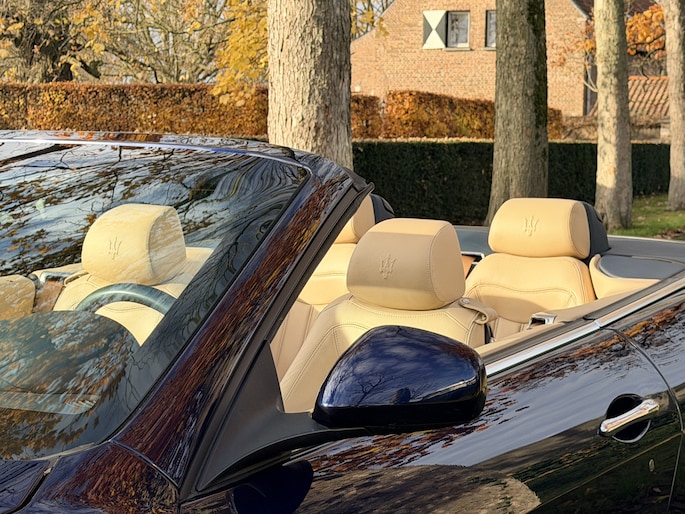 De verschijning van deze GranCabrio is pure verleiding. Blu Oceano, diep en elegant, komt onder daglicht tot leven en vormt een onweerstaanbare combinatie met de warme Sabbia lederen bekleding. Het interieur wordt verder verfijnd door Blu Navy accenten, waardoor een sfeer ontstaat van tijdloze luxe en mediterrane klasse — licht, luchtig en verfijnd. Je voelt onmiddellijk die typisch Italiaanse mix van smaak, flair en vakmanschap: nergens overdreven, overal precies raak.