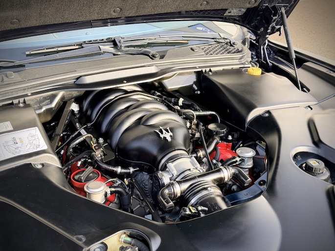 Zodra de V8 ontwaakt gebeurt wat alleen een Maserati kan. Het geluid is verslavend — vol en melodieus bij rustig rijden, rauw en scherp wanneer het mag. Het maakt niet uit of je ontspannen over panoramische wegen toert of de horizon wat sneller naar je toe trekt: de GranCabrio geeft je altijd het gevoel dat je precies op de juiste plek bent. Een auto die uitnodigt om te genieten, niet om te haasten.