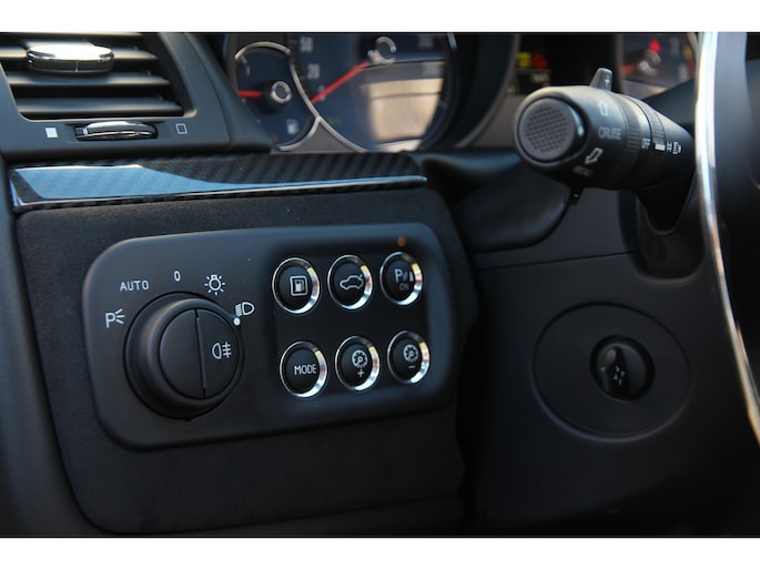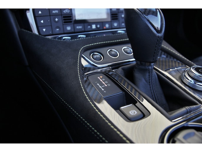 De buitengewone kleur wordt binnenin gecomplementeerd door een subliem zwart lederen/alcantara interieur, dat is afgewerkt met een sportief en contrasterend geel stiksel. Dit kleurenschema is een zeldzaam en gedurfd statement van smaak.