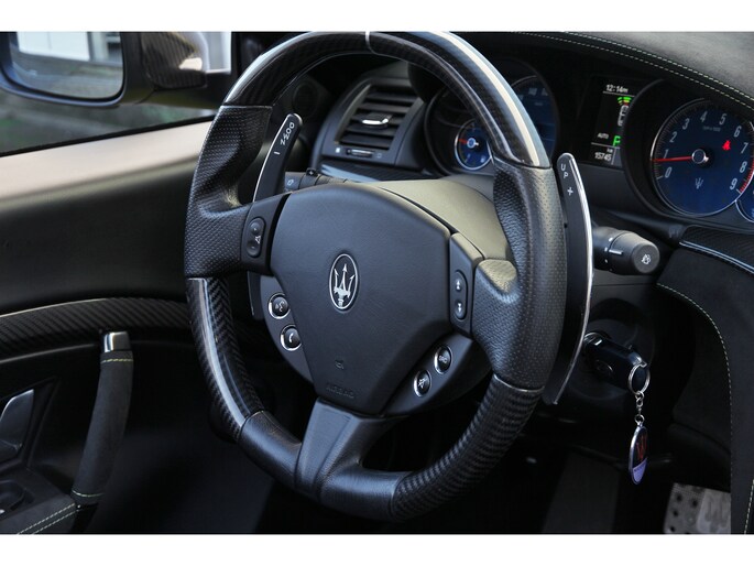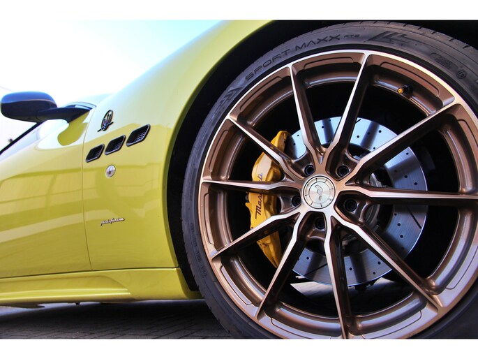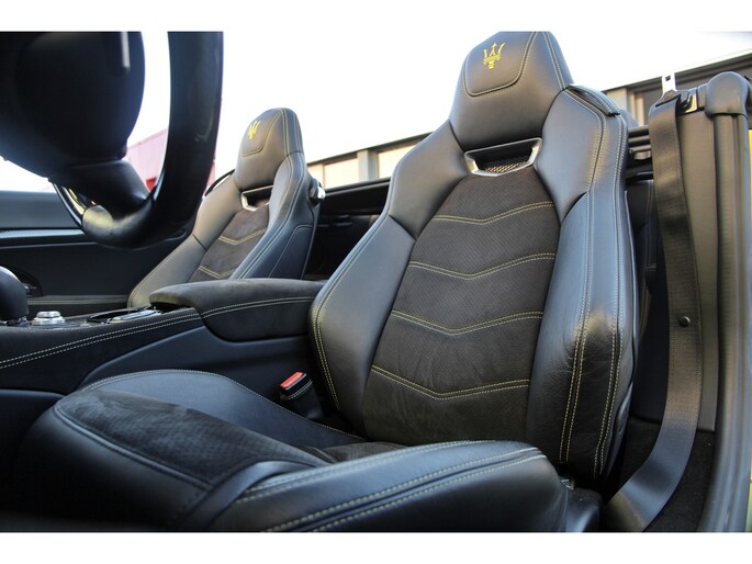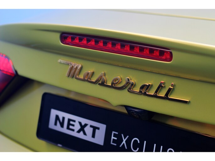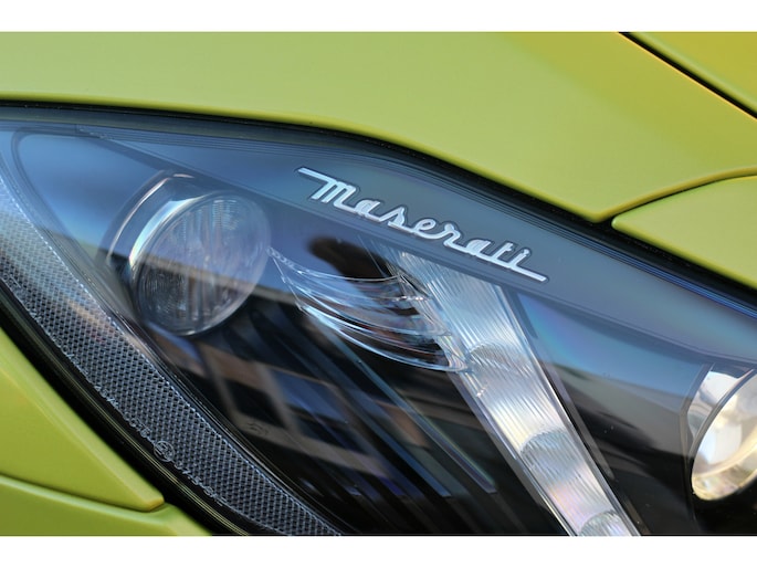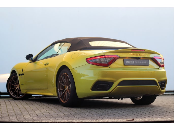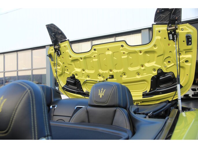 Wat deze GranCabrio werkelijk uniek maakt, is de sensationele en zeldzame lakkleur. Deze Maserati is uitgevoerd in een schitterende Aston Martin parelmoer lak, genaamd "Cosmopolitan Yellow". Deze speciale lak zorgt voor een ongeëvenaarde uitstraling die de krachtige lijnen van de Maserati perfect accentueert.