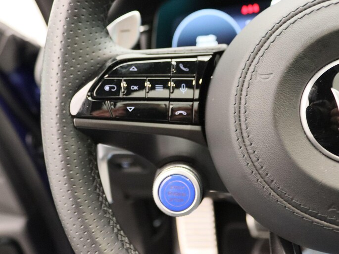 - Drilled Steering Wheel "Forged Black" with Fixed Paddle Shifters and Blue Start Button (QSCL )