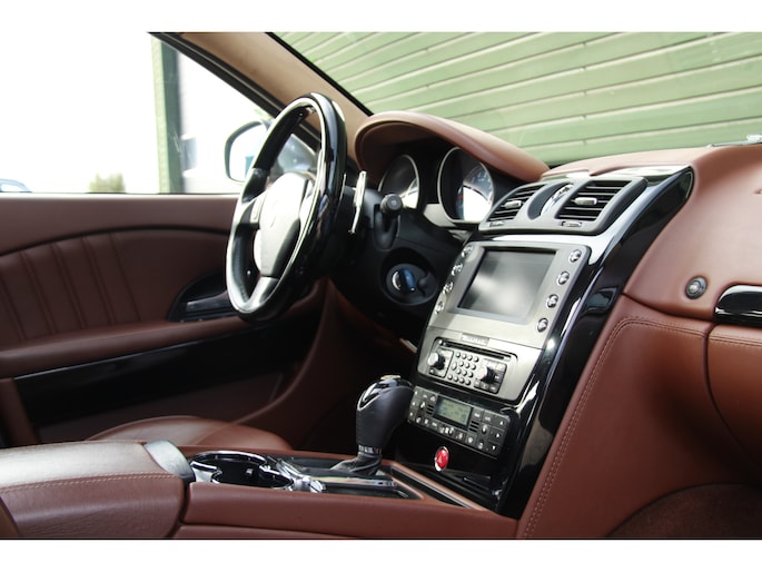 Als u houdt van autorijden, van Italiaans karakter, van luxe en sportiviteit, dan is deze 2011 Quattroporte S een indrukwekkende keuze! Dankzij de atmosferische 4,7 liter V8 motor is alleen het starten al een waar genot op zich. Door de 6 traps automatische ZF transmissie met 432pk op de achterwielen geeft dit een sportwagen beleving pur sang. Een generatie auto welke nog emotie teweegbrengt...