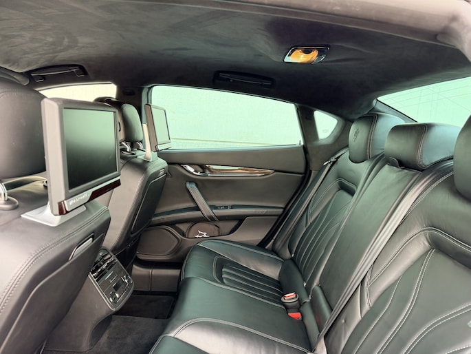Ook voor de passagiers achterin is deze Maserati een luxe bestemming. De 4-zone climate control zorgt ervoor dat iedere inzittende zijn eigen comfort kan bepalen, terwijl de verwarmde stoelen en het rear seat entertainment systeem met alle toebehoren lange ritten veranderen in pure ontspanning. De 20” velgen maken het geheel af en geven de auto precies die uitstraling die je van een Quattroporte mag verwachten: stijlvol, gespierd en onderscheidend zonder te overdrijven.