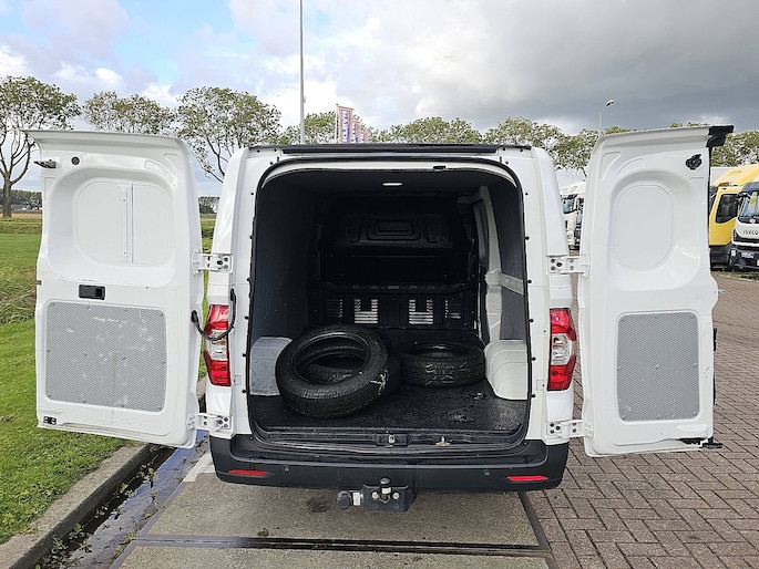 Configuratie: 4x2, Eigen gewicht: 1775 kg, Totaalgewicht: 2630 kg, Trekhaak, Soort cabine: enkele cabine, Cruise control, Airconditioning, Aantal airbags: 2, Parkeerhulp: Achterkant, Elektrische ramen, Elektrische spiegels, Tussenschot, Radio/cassette, Carplay, Kleur: Wit, Onderhoudsboekje, Verwarmde spiegels, Achteruitrij camera, Soort lampen: Halogeen, Snelheidsbegrenzing, Climatecontrol, Bluetooth, Motorvermogen: 90 Kw (121 Hp), Brandstof: Elektrisch, Soort versnellingsbak: Automaat, Snelheidsbegrenzing, Stuurbekrachtiging, ABS (Anti Blokkeer Systeem), ASR (Anti Slip Regeling), Start accu, Opbouw model: L2H1 - Medium wheelbase, Low roof, Imperiaal: Geen, Zijdeuren: 1, Achtersluiting: dubbele deur, Centrale vergrendeling, Zitplaatsen: 2, Stoelopstelling: 1+1, Stoelbekleding: stof, Stoel verstelling: Handmatig, L2 50kWh Elektrisch 220Km-Actieradius (WLTP) Trekhaak Parkeersensoren Emissie vrij!, Reservewiel, Profiel reservewiel: 4 %, Banden soort: All weather banden