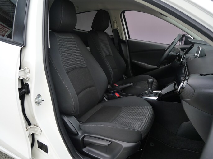 Deze Dealer Onderhouden Mazda 2 is direct van de tweede eigenaar afkomstig en gaaf uitgevoerd met een Zwart Dak / Privacy Glass & Antraciet Kleurige Lichtmetalen Velgen. Tegen meerprijs hebben wij ook een zelfde set velgen met winterbanden beschikbaar.