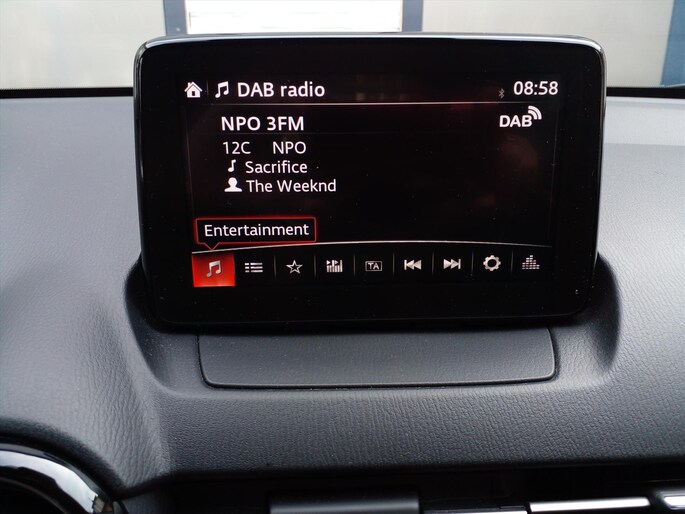 Soepel inparkeren gaat gemakkelijker dan u verwacht dankzij de parkeerhulp met achteruitrijcamera. Het audiosysteem is gecombineerd met het navigatiesysteem en geeft u de keus om onderweg te luisteren wat u wilt. Route- en verkeersinfo, uw favoriete albums en radioprogramma's, podcasts, luisterboeken... zeg het maar. Deze auto heeft ook bluetooth en DAB+ aan boord. De regensensor activeert automatisch de ruitenwissers als het regent of sneeuwt. Natuurlijk is er ook cruise control aan boord, waarmee u meer ontspannen en zuiniger rijdt. Vanzelfsprekend is deze auto ook van airconditioning voorzien. Deze MAZDA is voorzien van audiobediening op het stuur, isofix-aansluiting, centrale deurvergrendeling met afstandsbediening en boordcomputer.