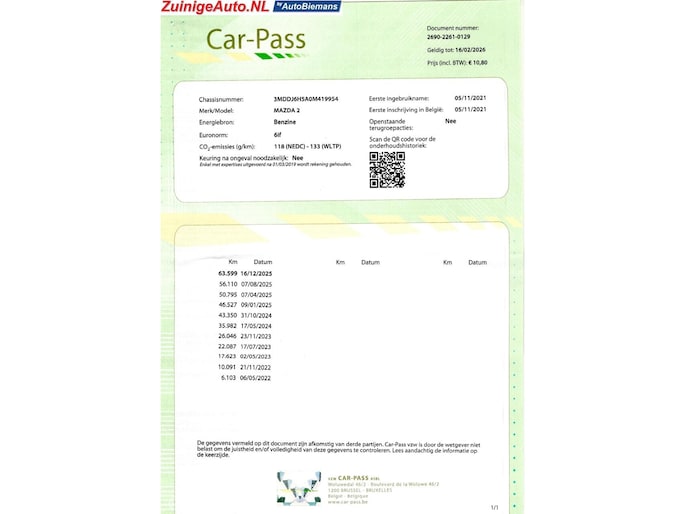 - Onderhoudshistorie aanwezig: Ja