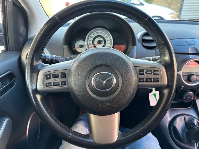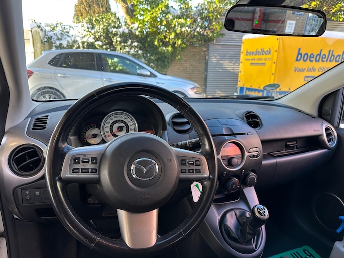 Leuke 5-deurs Mazda 2 voorzien van lichtmetalen velgen, parkeersensoren, multifunctioneel stuur, airco en cruise.