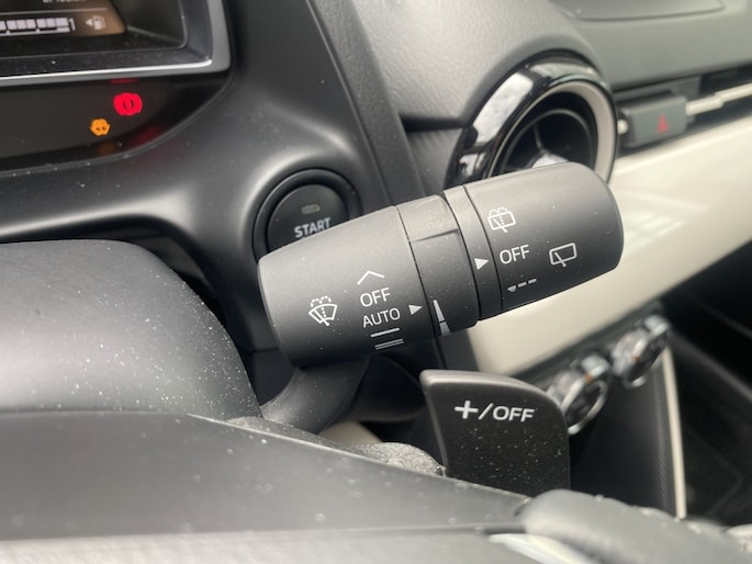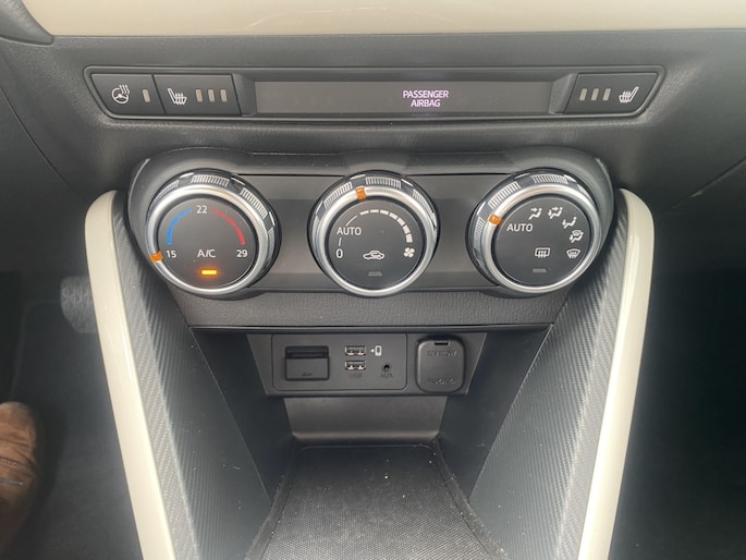 Deze Mazda 2 automaat is een Exclusive uitvoering. Dat betekent dat deze Mazda 2 voorzien is van o.a. • 16-inch lichtmetalen velgen, Haaienvinantenne in exterieurkleur, Grille-afwerking in exterieurkleur, LED Signature-verlichting, Ebony dashboard-afwerking, Automatisch dimmende binnenspiegel, Advanced Smart City Brake Support (SCBS) met voetgangerherkenning, Blind Spot Monitoring (BSM), Parkeersensoren achter, Lane Keep Assist, Climate Control, Licht- en regensensor, Stuurwielverwarming, • Stoelverwarming vóór, Schakelflippers, Smart Keyless Entry, Achteruitrijcamera, Privacy glass op zijruiten achter en achterruit.