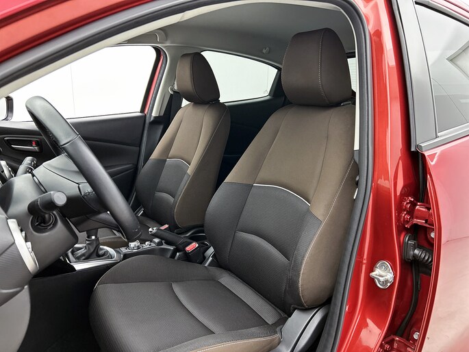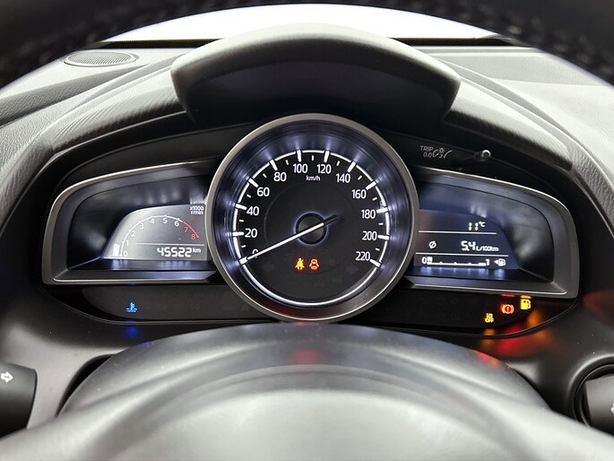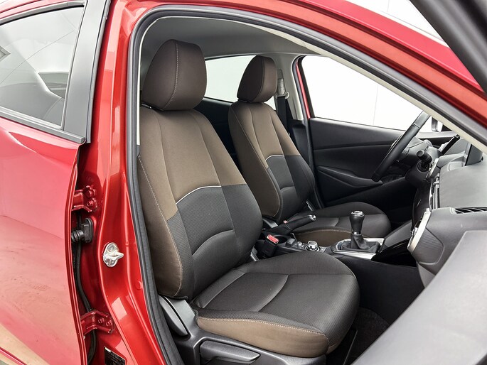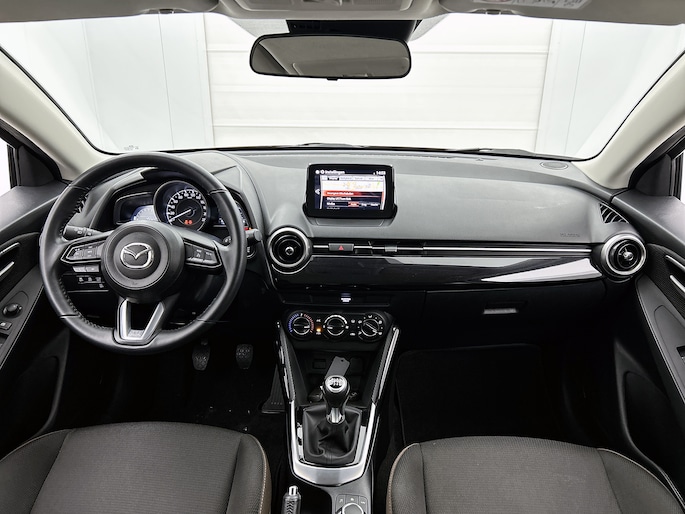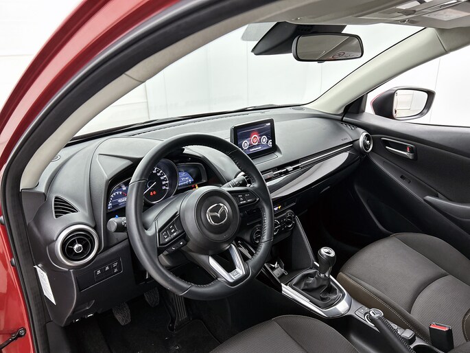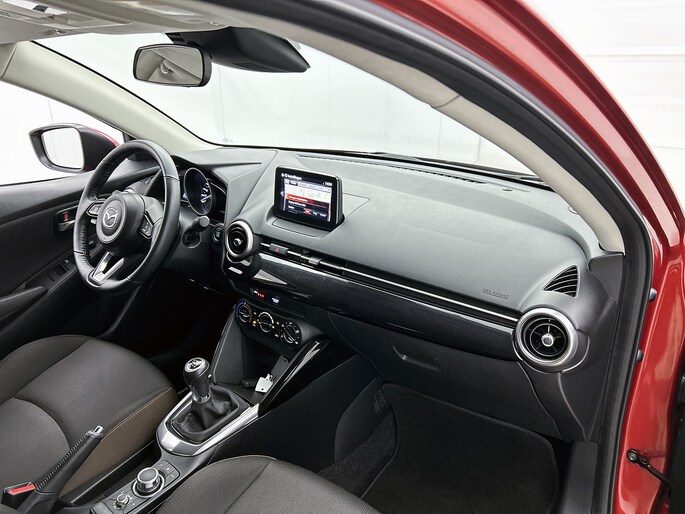 De achteruitrijcamera vergemakkelijkt achteruit inparkeren. Je ziet duidelijk wat er achter de auto gebeurt. Ook praktisch: deze auto is voorzien van een eigen audio-navigatiesysteem met Android auto en Apple carplay. Aan boord van deze Mazda 2 is een achteropkomend verkeer waarschuwing voor extra veiligheid. Het audiosysteem bedien je blind met behulp van de audiobesturing op het stuur. Veilig en praktisch! Voor storingvrije digitale radio-ontvangst zorgt de DAB-ontvanger. Met cruise control, airconditioning, lederen stuur, centrale deurvergrendeling met afstandsbediening, boordcomputer en lederen versnellingspook is deze auto helemaal compleet.