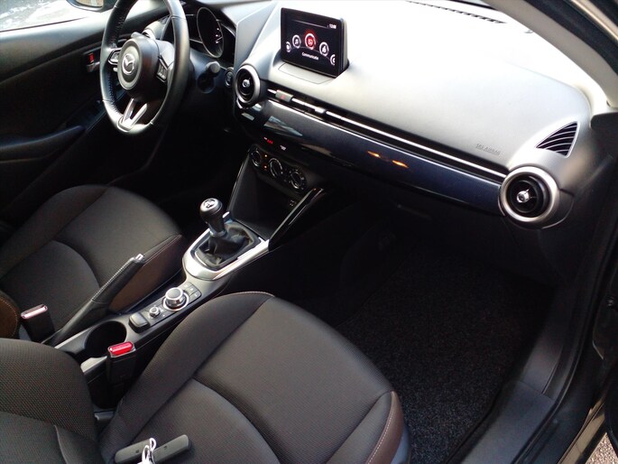 Bij de bouw van de MAZDA 2 wordt niets aan het toeval overgelaten. Vandaar dat hier een auto staat die in optimale conditie verkeert. Deze hybride MAZDA 2 gaat slim om met energie. Door rijden en remmen wordt de accu van de elektromotor opgeladen, die de brandstofmotor en handje helpt of zelfs de aandrijving overneemt. Ook LED koplampen met sproeiers, dakspoiler en in delen neerklapbare achterbank zijn aan boord.