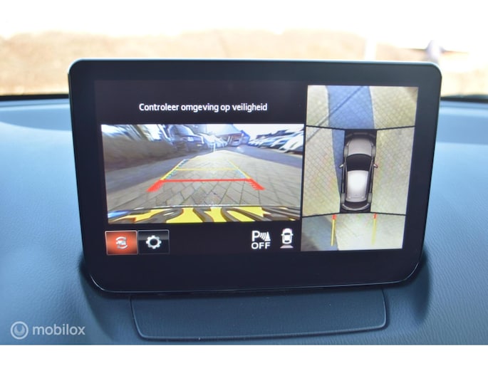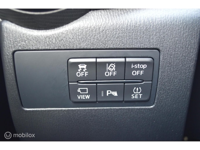Deze Mazda is voorzien van verschillende intelligente veiligheidsvoorzieningen. Ze kijken tijdens het rijden als het ware met u mee, ze signaleren potentieel gevaarlijke situaties en in een aantal gevallen kunnen ze ook ingrijpen. Jachtvliegers weten het al jaren: belangrijke info projecteer je in je zichtveld zodat je je hoofd niet meer hoeft te draaien. De hier aanwezige head-up display doet precies hetzelfde! Het Lane-keeping systeem doet precies wat nodig is: waarschuwen en corrigeren bij onbedoelde overschrijding van de rijstrooklijnen. Mindert een voorligger onverwachts te veel vaart, dan komt de forward collision warning in actie en waarschuwt meteen. In deze Mazda vinden we verder een dodehoekdetectie, hill hold functie, brake assist en bandenspanningcontrolesysteem.